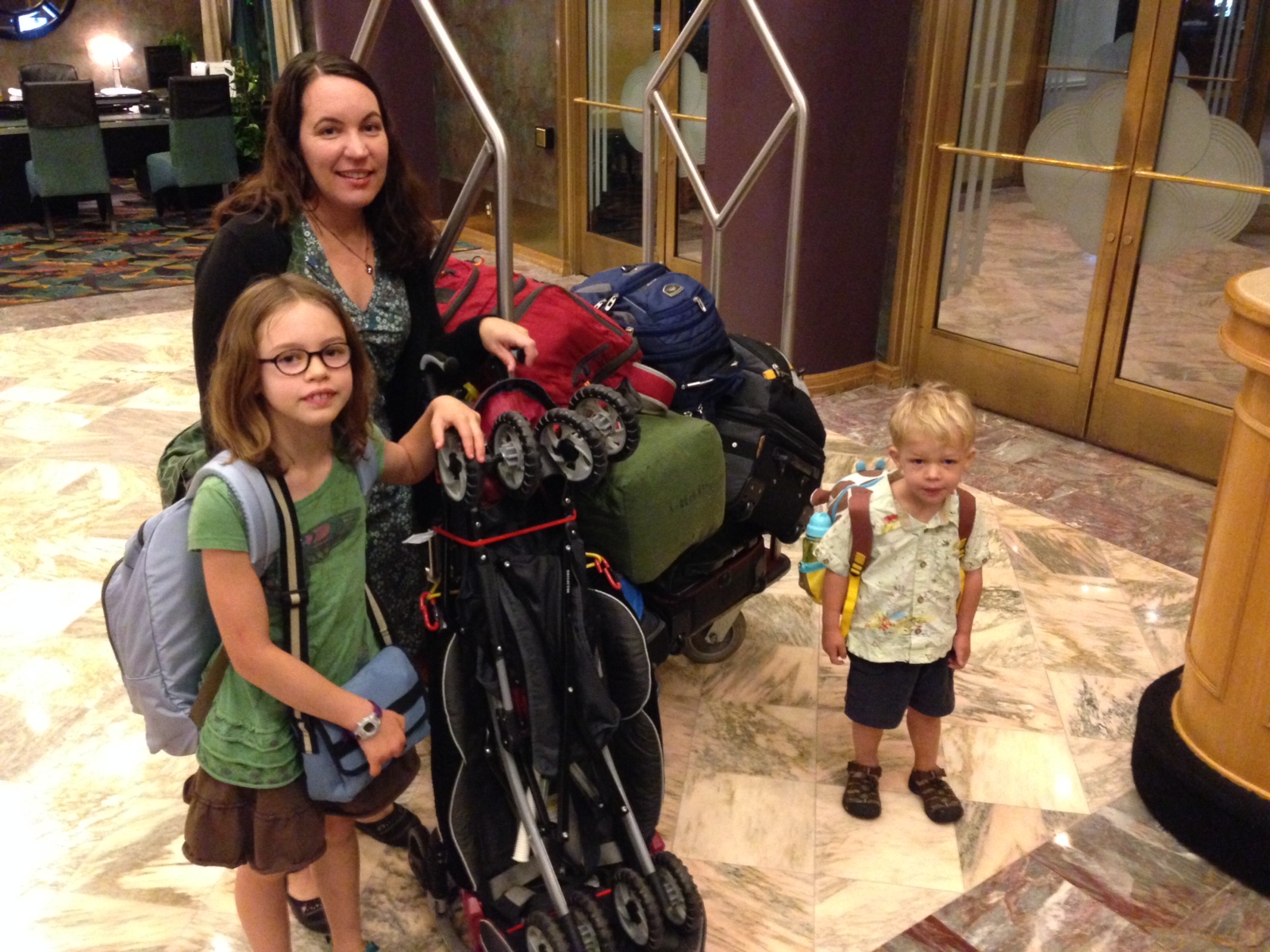 We had a relatively smooth time getting here, and considering how many things COULD HAVE gone wrong – we were very lucky indeed. We left very early in the morning from a hotel in Minneapolis near the airport. Even the kids weren’t too upset about having to get up at 4 am as we were all pretty excited to get out of town after what seemed like years of preparation. The last month before leaving was exceedingly stressful. Selling the bulk of our belongings, finding good homes for other things, and boxing up the rest and moving it to my parents’ basement took longer than we anticipated. Actually, everything seemed to take longer than we anticipated. The final days of deciding what to pack in the suitcases and making sure they weren’t over the weight and size limits was frankly a major pain in the butt.